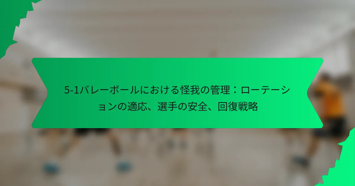 5-1バレーボールにおける怪我の管理は、選手のローテーションを調整し、安全プロトコルを確保することに焦点を当てており、6-2のような他のシステムとは大きく異なる場合があります。5-1システムは、選手のローテーションをより一貫して行うことができ、選手の疲労や怪我の回復をより効果的に監視するのに役立ちます。