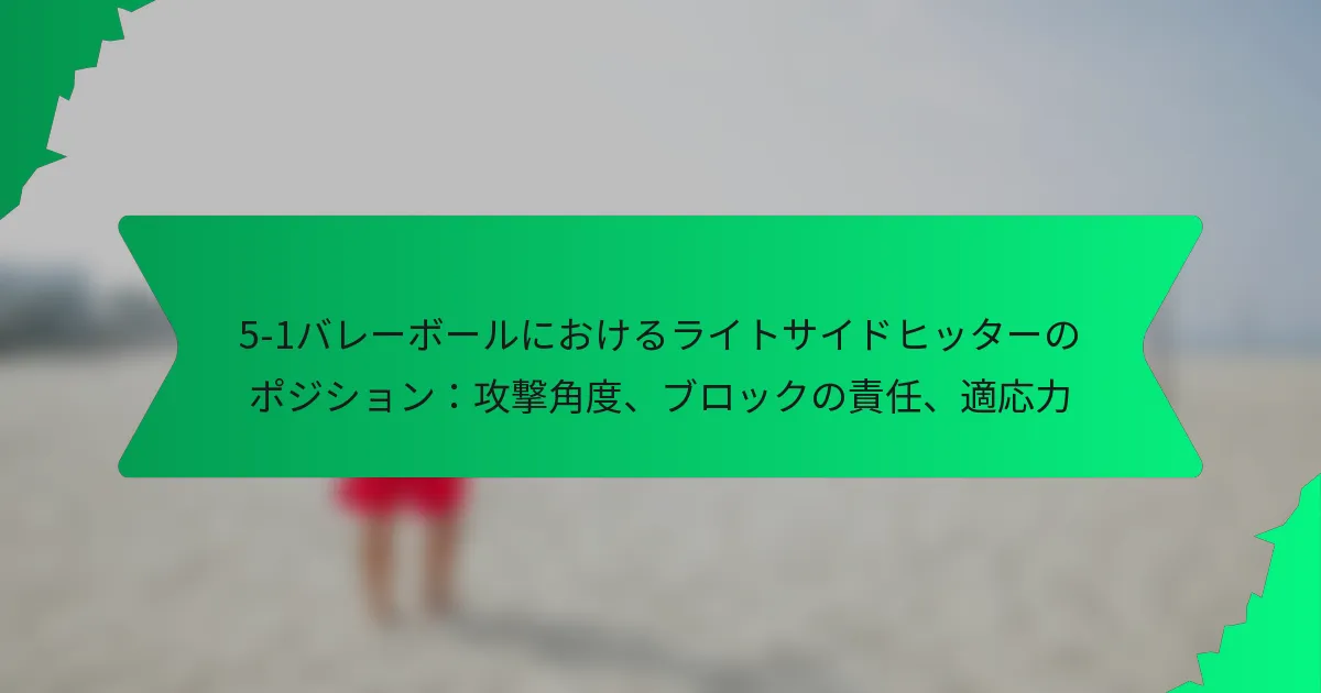 5-1バレーボールシステムにおけるライトサイドヒッターは、攻撃と防御の戦略において不可欠な役割を果たします。このポジションは、得点機会を最適化するための攻撃角度の習得と、重要なブロックの責任を担うことを要求されます。さらに、適応力が重要であり、ライトサイドヒッターは異なるゲーム状況やチームのダイナミクスに迅速に調整し、効果的なプレーを維持する必要があります。