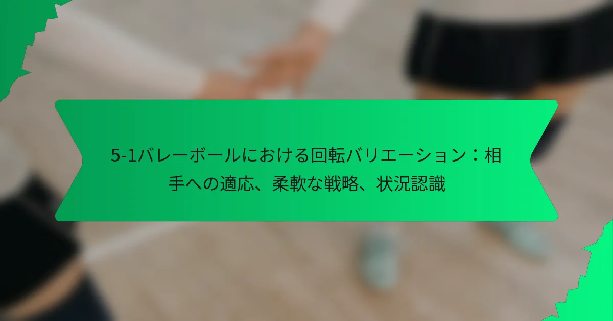 5-1バレーボールシステムは、1人のセッターと5人のヒッターを特徴としており、対戦相手に適応するためのさまざまなローテーション戦略を可能にします。一般的なローテーションのバリエーションは、選手のポジションを最適化し、攻撃と守備の移行を強化し、試合中の状況認識を向上させることに焦点を当てています。