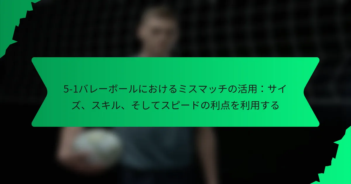 5-1バレーボールにおいてミスマッチを活用することは、サイズ、スキル、スピードの優位性を戦略的に利用して対戦相手を出し抜くことを含みます。効果的な戦術には、特定のラインアップを形成すること、選手間のコミュニケーションを強化すること、対戦チームの弱点に基づいてリアルタイムで調整を行うことが含まれます。